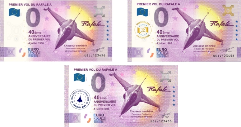 - La fiche technique Officielle du Billet 0€ « Premier vol du Rafale A » :